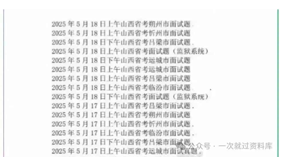 山西省考公务员面试历年真题+答案解析(2021-2025年) 省考面试真题 推广 真题任何时候都具有参考价值 山西省考公务员面试真题+解析具体年份目录详见图片,图片中没有的就没有不仅仅只是简单的参考答案哦!而是从审题重点出发,到思维导图,再到最后的参考答案,都有详尽的解析,让你养成良好的面试思维体系! 资源下载下载价格12.9 金币立即购买1. 发百度网盘,虚拟商品可复制,售出无法退换哦; 2支付成功后,重新扫原二维码,点下方红条‘’立即下载‘’ 自取链接