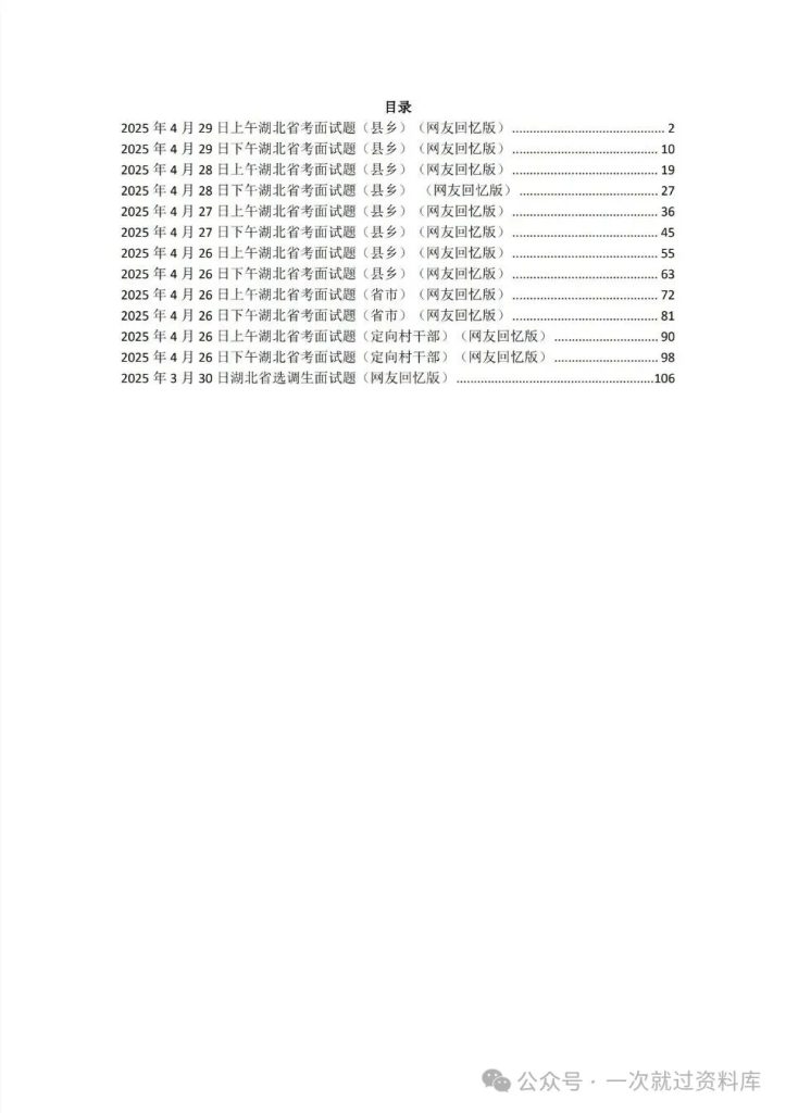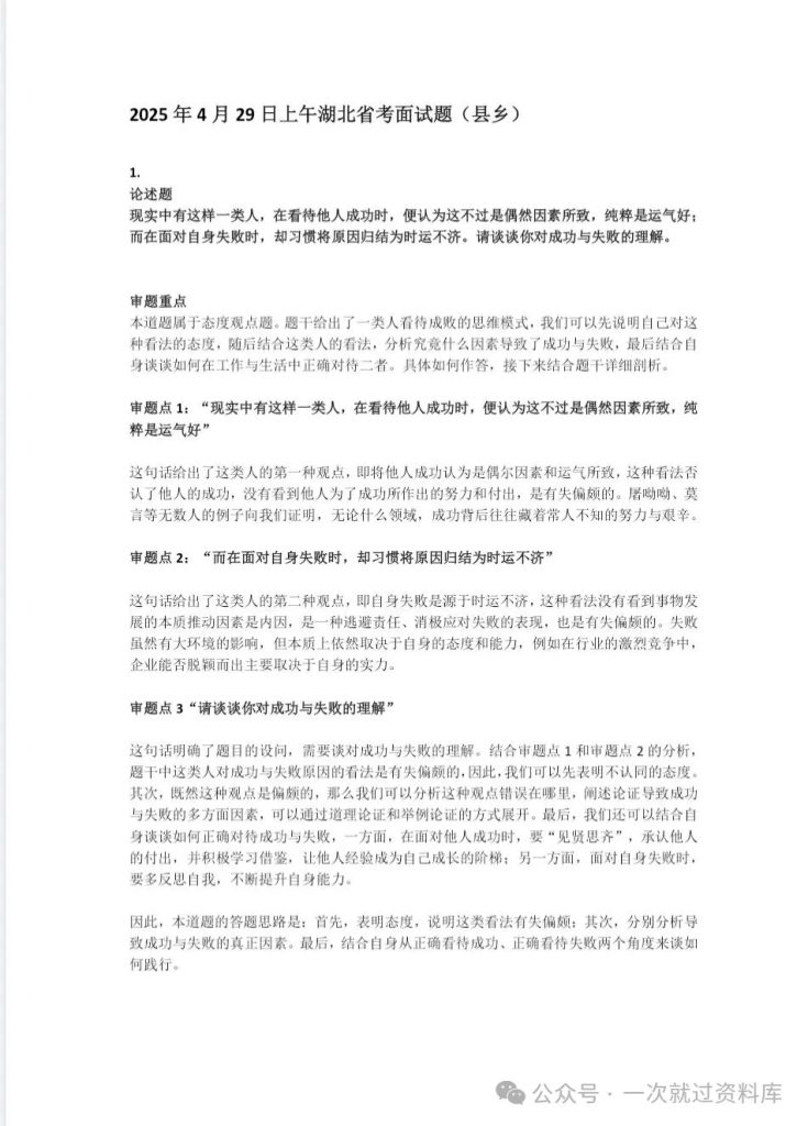 湖北省考公务员面试历年真题+答案解析(2019-2025年) 省考面试真题 推广 真题任何时候都具有参考价值 湖北省考公务员面试真题+解析具体年份目录详见图片,图片中没有的就没有不仅仅只是简单的参考答案哦!而是从审题重点出发,到思维导图,再到最后的参考答案,都有详尽的解析,让你养成良好的面试思维体系! 资源下载下载价格12.9 金币立即购买1. 发百度网盘,虚拟商品可复制,售出无法退换哦; 2支付成功后,重新扫原二维码,点下方红条‘’立即下载‘’ 自取链接