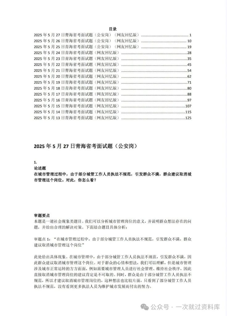 青海省考公务员面试历年真题+答案解析(2019-2025年) 省考面试真题 推广 题任何时候都具有参考价值 青海省考公务员面试真题+解析具体年份目录详见图片,图片中没有的就没有不仅仅只是简单的参考答案哦!而是从审题重点出发,到思维导图,再到最后的参考答案,都有详尽的解析,让你养成良好的面试思维体系! 资源下载下载价格12.9 金币立即购买1. 发百度网盘,虚拟商品可复制,售出无法退换哦; 2支付成功后,重新扫原二维码,点下方红条‘’立即下载‘’ 自取链接