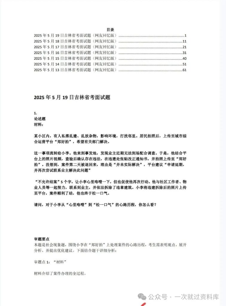 吉林省考公务员面试历年真题+答案解析(2019-2025年) 省考面试真题 推广 真题任何时候都具有参考价值 吉林省考公务员面试真题+解析具体年份目录详见图片,图片中没有的就没有不仅仅只是简单的参考答案哦!而是从审题重点出发,到思维导图,再到最后的参考答案,都有详尽的解析,让你养成良好的面试思维体系! 资源下载下载价格12.9 金币立即购买1. 发百度网盘,虚拟商品可复制,售出无法退换哦; 2支付成功后,重新扫原二维码,点下方红条‘’立即下载‘’ 自取链接