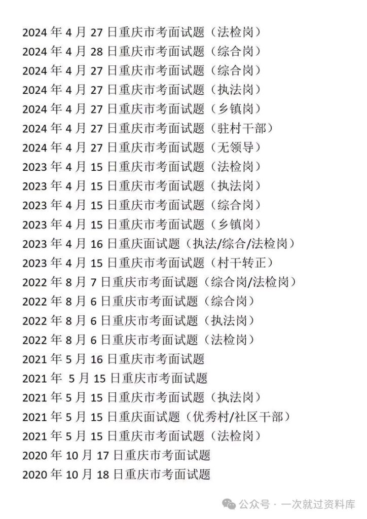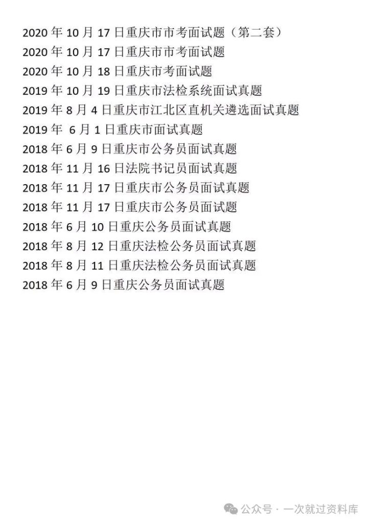 重庆市考公务员面试历年真题+答案解析(2018-2025年) 省考面试真题 推广 【公众号:一次就过资料库,资源关键字:重庆市考面试】 资源目录同公众号文章详情 资源下载下载价格12.9 金币立即购买1. 发百度网盘,虚拟商品可复制,售出无法退换哦; 2支付成功后,重新扫原二维码,点下方红条‘’立即下载‘’ 自取链接