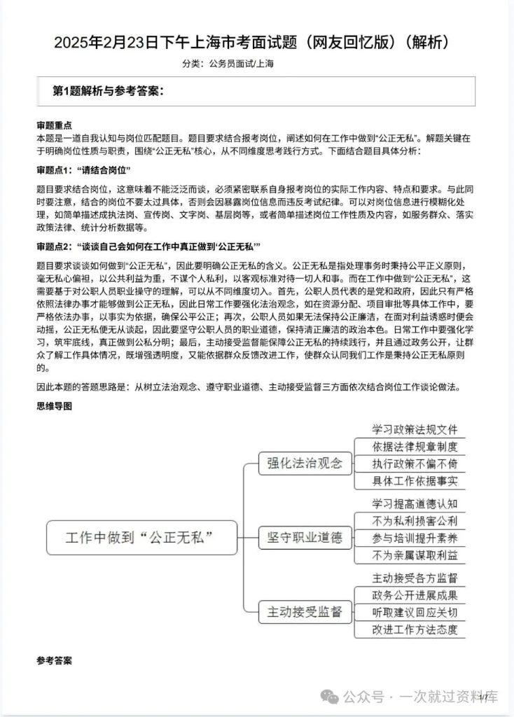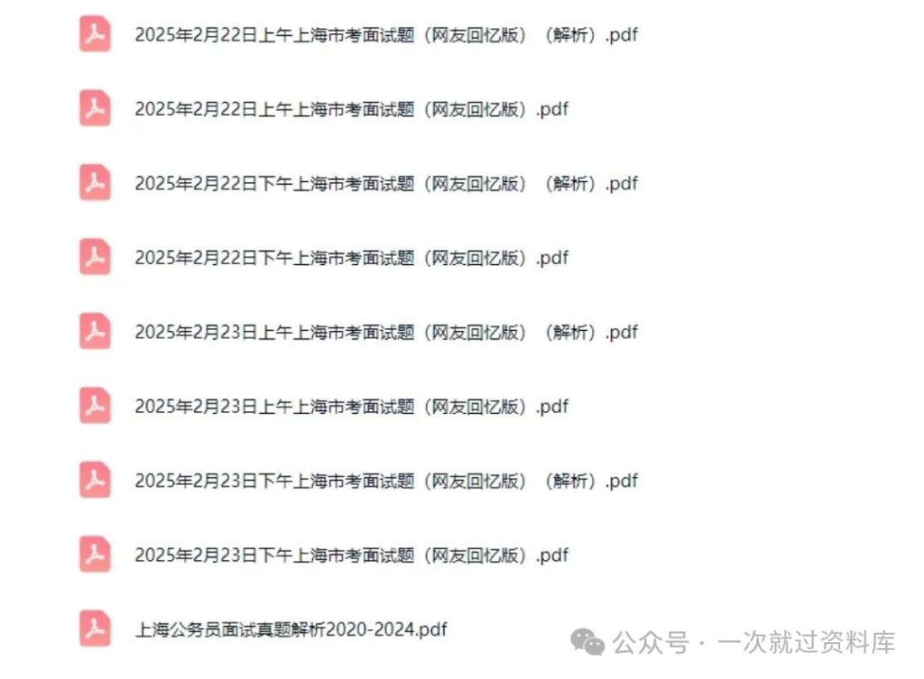 上海公务员面试真题2017-2025市考结构化面试题带答案解析 省考面试真题 推广 真题任何时候都有参考价值 上海公务员面试真题2017-2025市考结构化面试题带答案解析 上午/下午场面试备考资料 备考上海市考面试的伙伴看过来!这份整理好的2017~2025年真题资料,是你上岸的实用帮手! 资源下载下载价格12.9 金币立即购买1. 发百度网盘,虚拟商品可复制,售出无法退换哦; 2支付成功后,重新扫原二维码,点下方红条‘’立即下载‘’ 自取链接