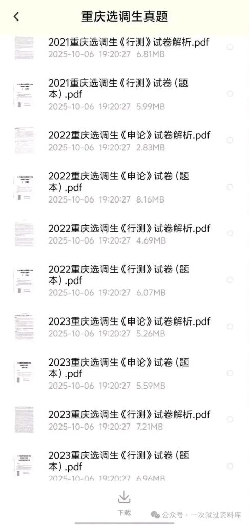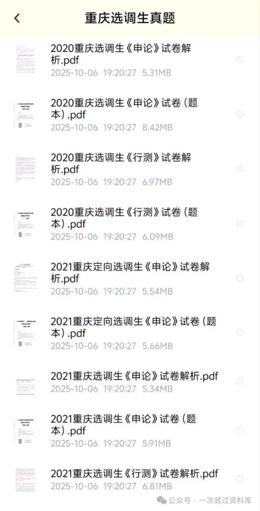 重庆选调历年真题附答案解析【20-25年 选调笔试真题 推广 真题任何时候都有参考价值重庆选调生真题集(2020-2025)包含:定向选调 + 常规选调 资源下载下载价格12.9 金币立即购买1. 发百度网盘,虚拟商品可复制,售出无法退换哦; 2支付成功后,重新扫原二维码,点下方红条‘’立即下载‘’ 自取链接